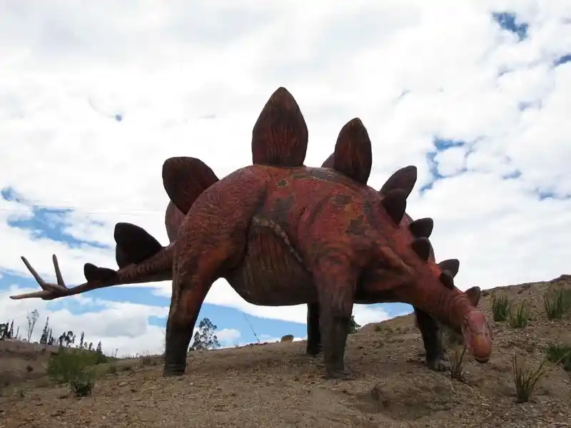 • Estegosaurio: El “lagarto con tejado”, famoso por sus placas óseas en el lomo.